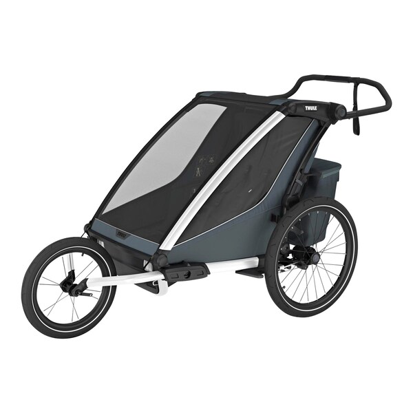 Der Fahrradanhänger Chariot Cross 2 Double von Thule bringt Flexibilität in den Alltag aktiver Familien. Dank des redesignten FlipWing-Systems kann der robuste und sichere Trailer in wenigen Sekunden in einen Buggy verwandelt werden. Nimmt ein Mini-Passagier im Wagen Platz, sitzt das Kind mittig. Sind Geschwister oder Freunde gemeinsam unterwegs, können die modularen Sitzeinheiten seitlich angeordnet werden.