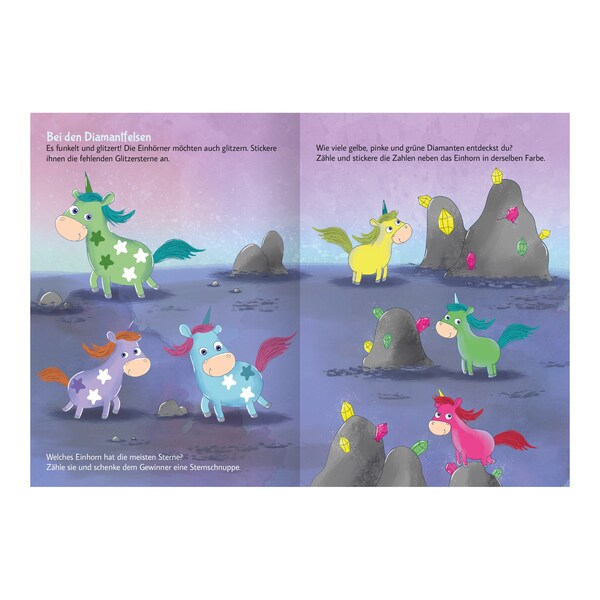 Mit dem Heft Stickern & Rätseln – Einhörner aus dem Verlag arsEdition sind die Minis beschäftigt. Die Kleinen können abwechslungsreiche Rätselaufgaben rund um magische Einhörner lösen. Dazu benötigen sie nichts außer der 300 Sticker. Die Das Ergebnis wird direkt in das Heft geklebt.