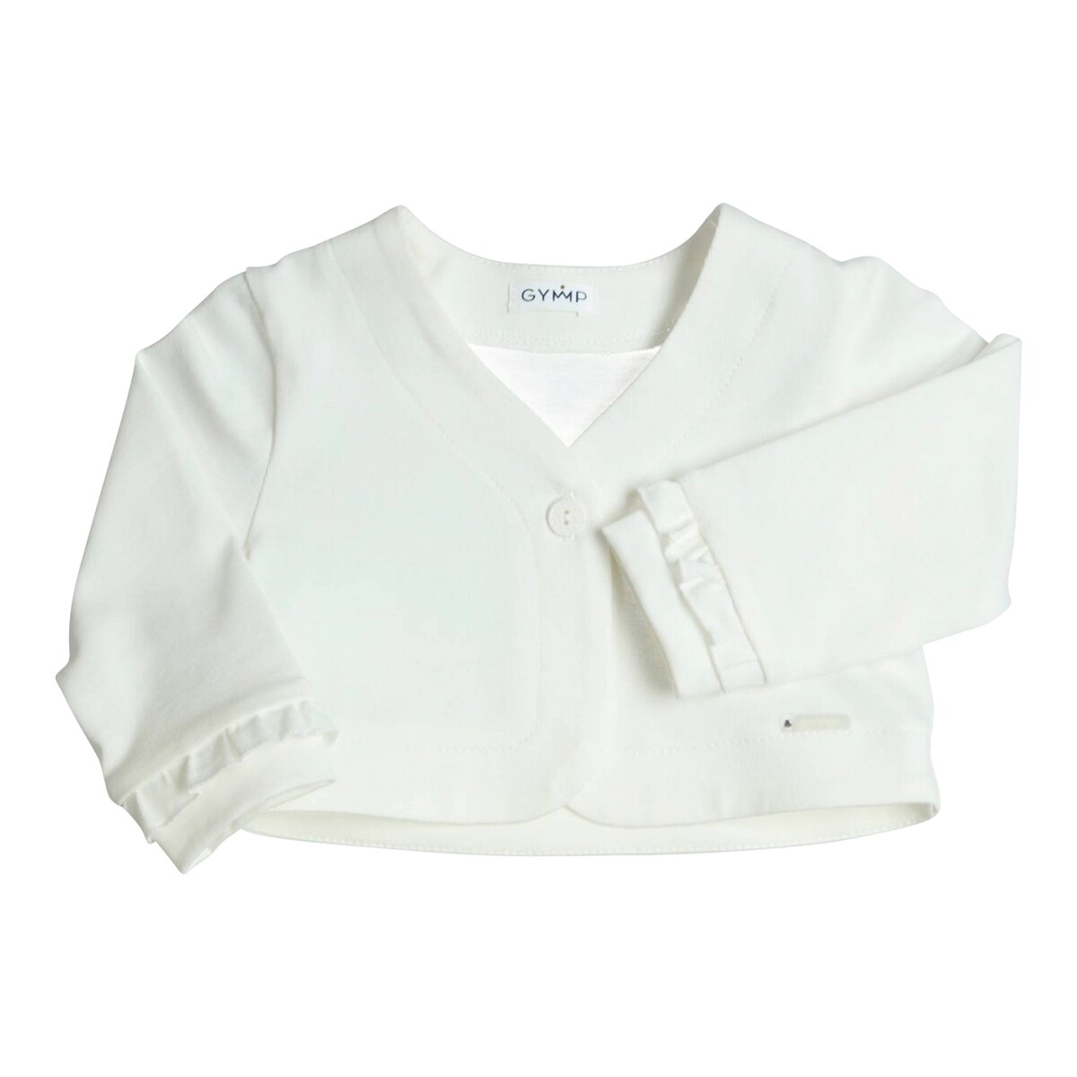 Der Bolero von Gymp wertet jedes Outfit Deines Kindes zusätzlich auf. Die betont schlicht gestaltete Kurzjacke hat mit ihren Rüschenborten an den Ärmeln ein besonders schönes Detail in petto. Verschlossen wird sie mithilfe eines Knopfes unterhalb des V-Ausschnitts. Damit auch der Tragekomfort nicht zu kurz kommt, wurde der Bolero aus viel natürlicher Baumwolle mit einer Beigabe von Elasthan gefertigt.