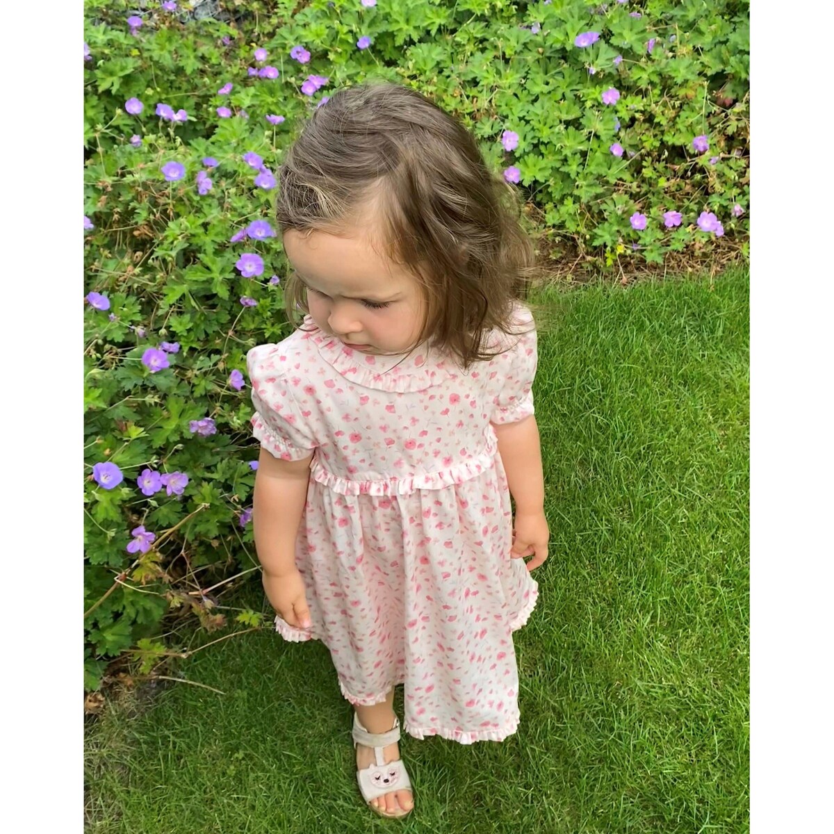 Kleid kurzarm Blumen Rüschen weiß/rosa