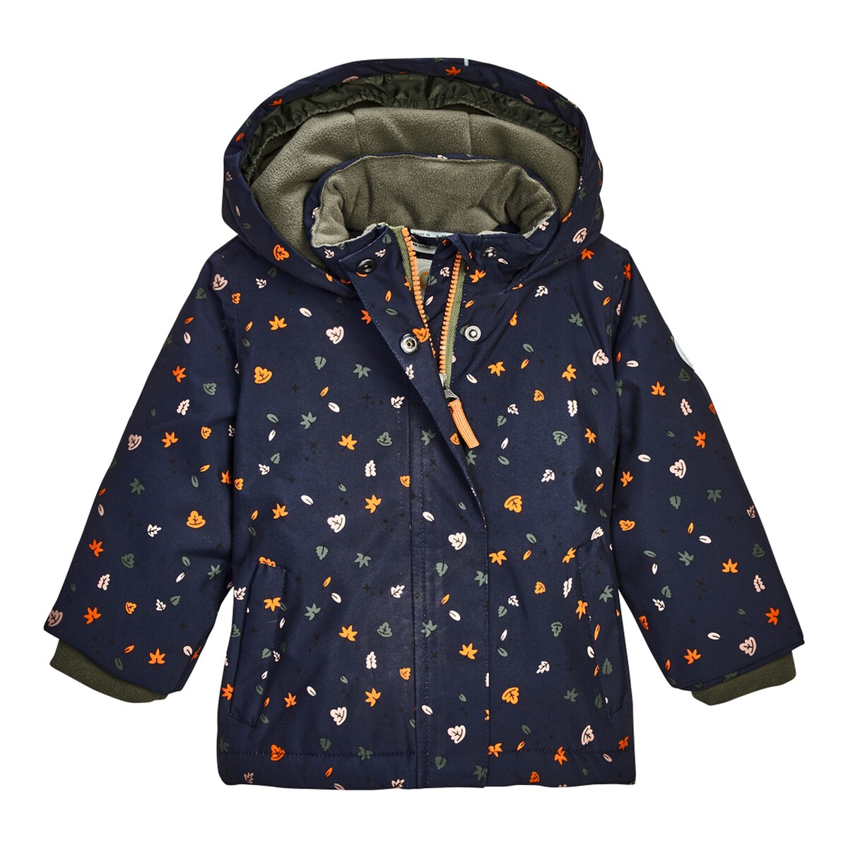 Winterjacke mit Kapuze Blätter marine/bunt