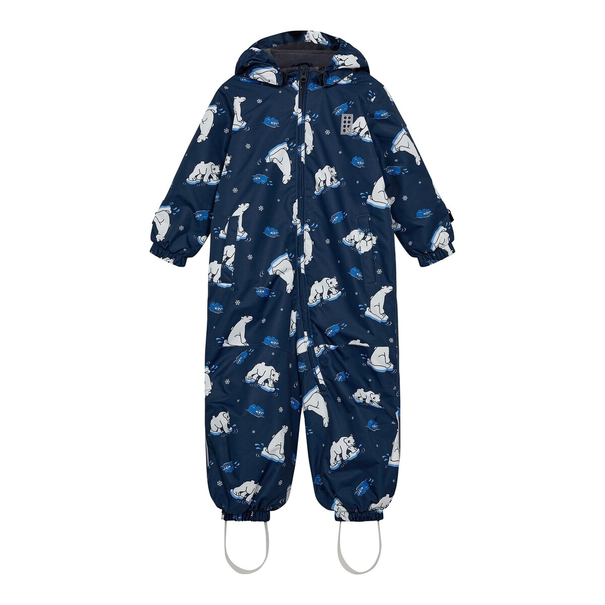 Schneeoverall mit abnehmbarer Kapuze LWJeri Eisbären marine/natur